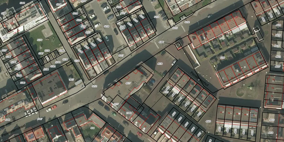 Penitentenstraat 18 is gelegen op kadastraal perceel WEE01R4577. Deze kadastrale aanduiding is uniek en wordt gebruikt door het Kadaster om eigendomsrechten en andere zakelijke rechten vast te leggen. Het perceel maakt onderdeel uit van de kadastrale gemeente Weert.