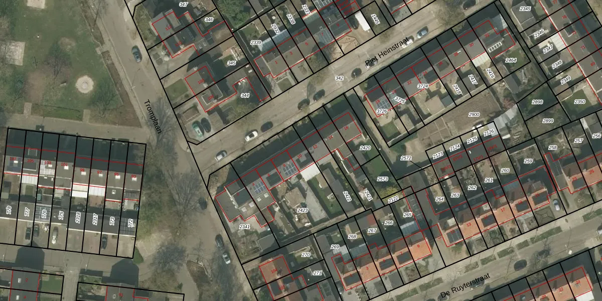 Het perceel waarop Piet Heinstraat 10 staat heeft een oppervlakte van 827 m². Dit is een groot perceel. De perceeloppervlakte wordt geregistreerd door het Kadaster. Gedetailleerde informatie over de maten van dit perceel kunt u vinden in het rapport Kadastrale kaart met maatvoering van Piet Heinstraat 10.