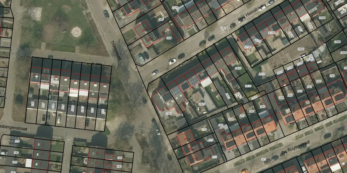 Het perceel waarop Piet Heinstraat 4 staat heeft een oppervlakte van 827 m². Dit is een groot perceel. De perceeloppervlakte wordt geregistreerd door het Kadaster. Gedetailleerde informatie over de maten van dit perceel kunt u vinden in het rapport Kadastrale kaart met maatvoering van Piet Heinstraat 4.