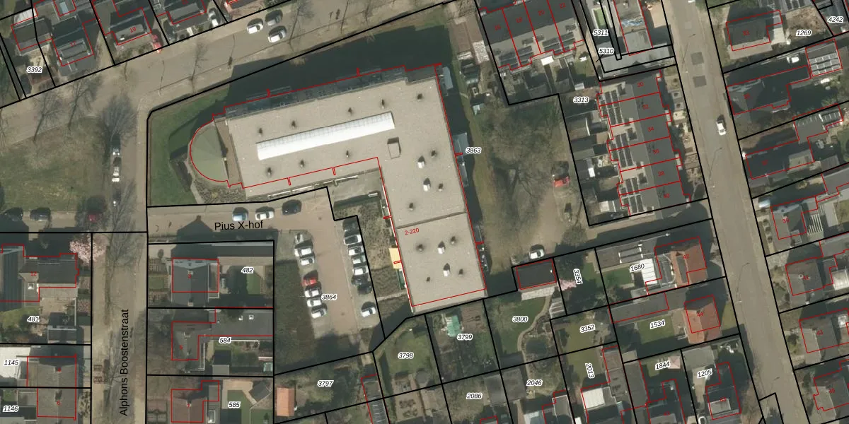 Het perceel waarop Pius X-hof 114 staat heeft een oppervlakte van 4578 m². Dit is een zeer groot perceel. De perceeloppervlakte wordt geregistreerd door het Kadaster. Gedetailleerde informatie over de maten van dit perceel kunt u vinden in het rapport Kadastrale kaart met maatvoering van Pius X-hof 114.