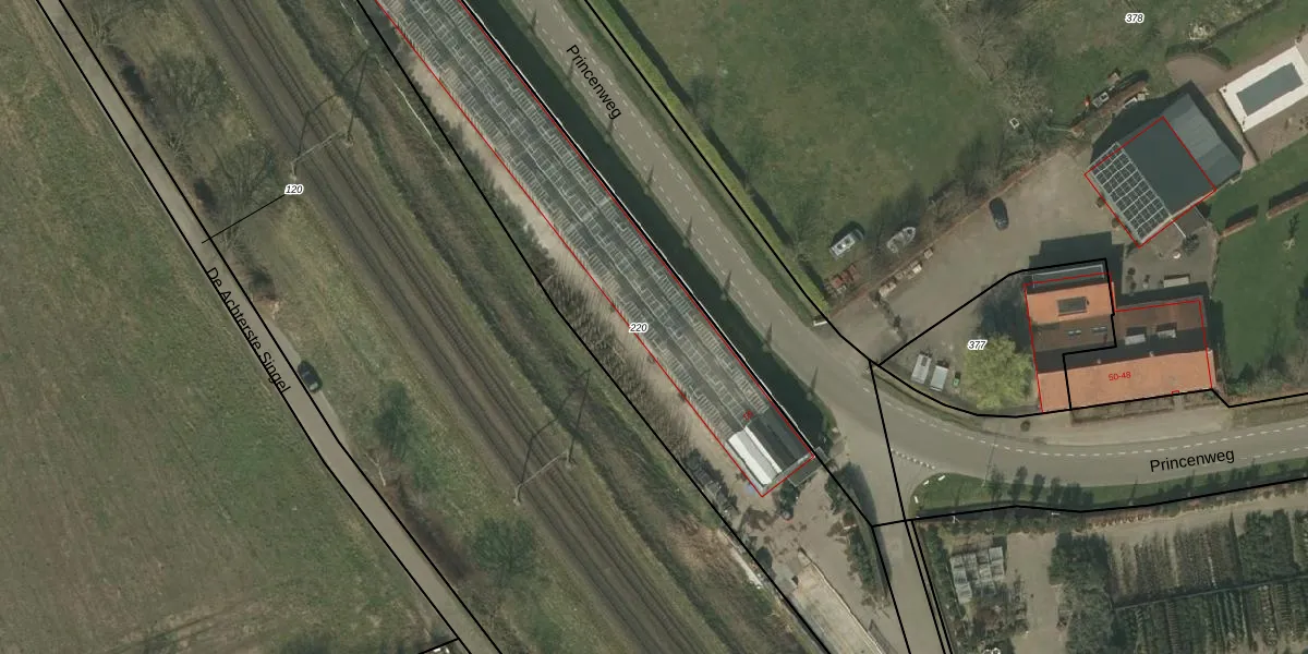 Het perceel waarop Princenweg 55 staat heeft een oppervlakte van 2471 m². Dit is een zeer groot perceel. De perceeloppervlakte wordt geregistreerd door het Kadaster. Gedetailleerde informatie over de maten van dit perceel kunt u vinden in het rapport Kadastrale kaart met maatvoering van Princenweg 55.
