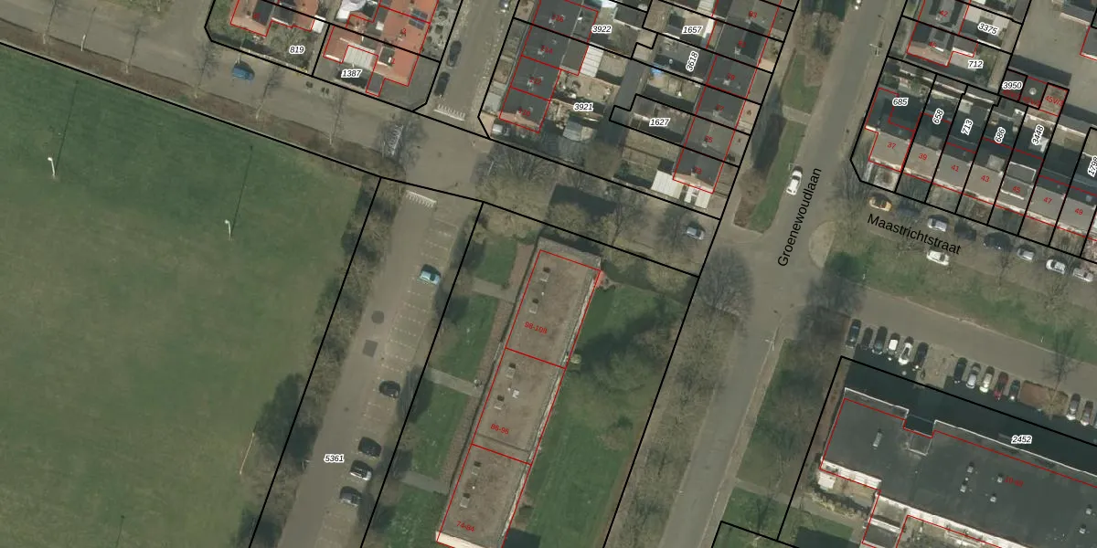 Het perceel waarop Prinsbisdomstraat 106 staat heeft een oppervlakte van 8000 m². Dit is een zeer groot perceel. De perceeloppervlakte wordt geregistreerd door het Kadaster. Gedetailleerde informatie over de maten van dit perceel kunt u vinden in het rapport Kadastrale kaart met maatvoering van Prinsbisdomstraat 106.