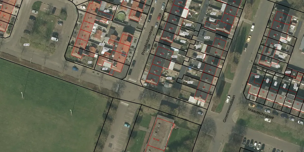 Het perceel waarop Prinsbisdomstraat 110 staat heeft een oppervlakte van 901 m². Dit is een groot perceel. De perceeloppervlakte wordt geregistreerd door het Kadaster. Gedetailleerde informatie over de maten van dit perceel kunt u vinden in het rapport Kadastrale kaart met maatvoering van Prinsbisdomstraat 110.