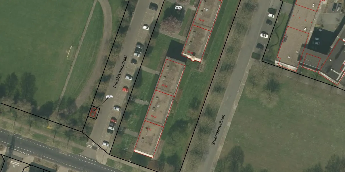 Het perceel waarop Prinsbisdomstraat 28 staat heeft een oppervlakte van 8000 m². Dit is een zeer groot perceel. De perceeloppervlakte wordt geregistreerd door het Kadaster. Gedetailleerde informatie over de maten van dit perceel kunt u vinden in het rapport Kadastrale kaart met maatvoering van Prinsbisdomstraat 28.