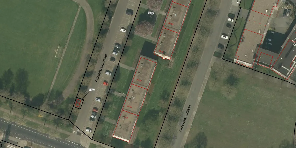Het perceel waarop Prinsbisdomstraat 32 staat heeft een oppervlakte van 8000 m². Dit is een zeer groot perceel. De perceeloppervlakte wordt geregistreerd door het Kadaster. Gedetailleerde informatie over de maten van dit perceel kunt u vinden in het rapport Kadastrale kaart met maatvoering van Prinsbisdomstraat 32.