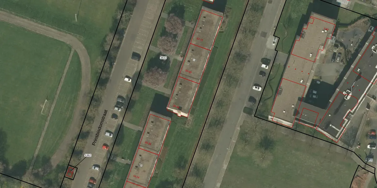 Het perceel waarop Prinsbisdomstraat 48 staat heeft een oppervlakte van 8000 m². Dit is een zeer groot perceel. De perceeloppervlakte wordt geregistreerd door het Kadaster. Gedetailleerde informatie over de maten van dit perceel kunt u vinden in het rapport Kadastrale kaart met maatvoering van Prinsbisdomstraat 48.