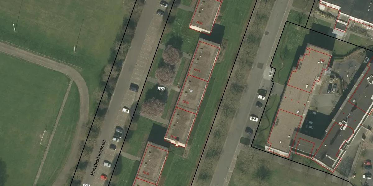 Het perceel waarop Prinsbisdomstraat 54 staat heeft een oppervlakte van 8000 m². Dit is een zeer groot perceel. De perceeloppervlakte wordt geregistreerd door het Kadaster. Gedetailleerde informatie over de maten van dit perceel kunt u vinden in het rapport Kadastrale kaart met maatvoering van Prinsbisdomstraat 54.
