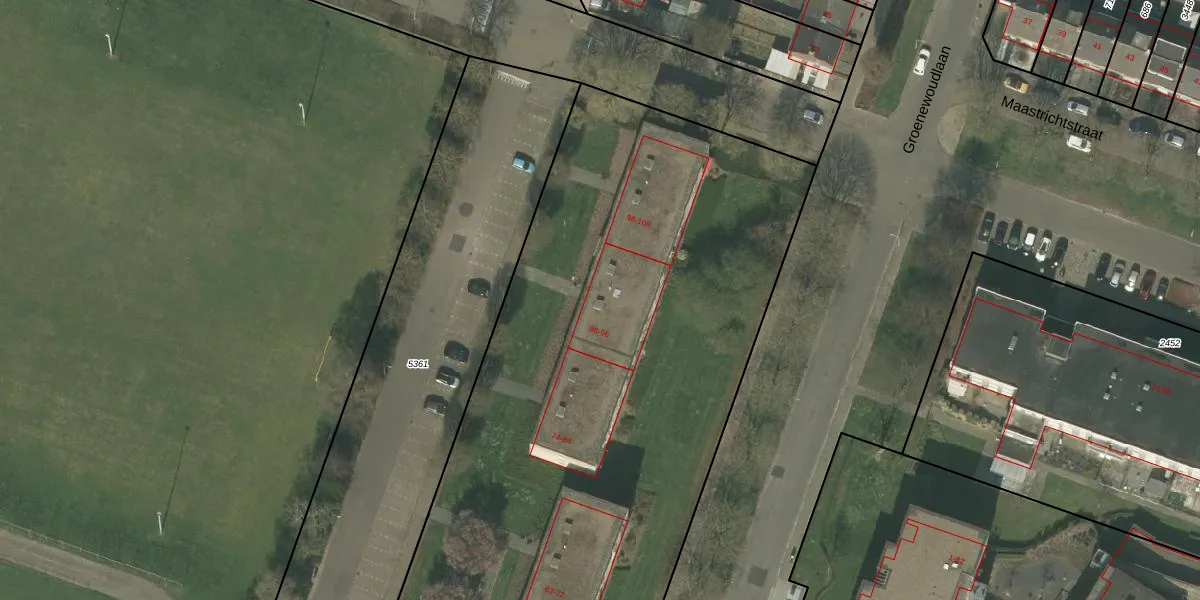 Het perceel waarop Prinsbisdomstraat 90 staat heeft een oppervlakte van 8000 m². Dit is een zeer groot perceel. De perceeloppervlakte wordt geregistreerd door het Kadaster. Gedetailleerde informatie over de maten van dit perceel kunt u vinden in het rapport Kadastrale kaart met maatvoering van Prinsbisdomstraat 90.