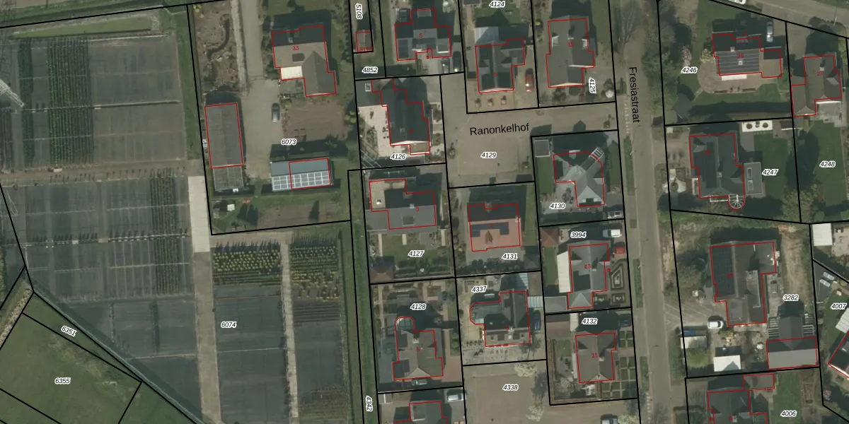 Het perceel waarop Ranonkelhof 3 staat heeft een oppervlakte van 542 m². Dit is een groot perceel. De perceeloppervlakte wordt geregistreerd door het Kadaster. Gedetailleerde informatie over de maten van dit perceel kunt u vinden in het rapport Kadastrale kaart met maatvoering van Ranonkelhof 3.