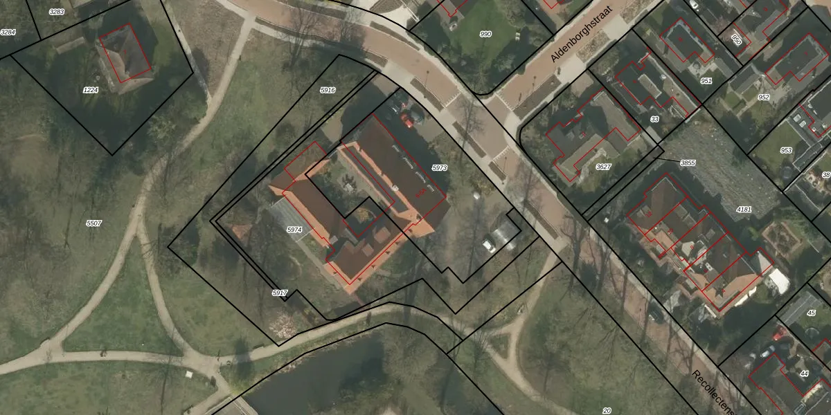Het perceel waarop Recollectenstraat 5-A staat heeft een oppervlakte van 1170 m². Dit is een zeer groot perceel. De perceeloppervlakte wordt geregistreerd door het Kadaster. Gedetailleerde informatie over de maten van dit perceel kunt u vinden in het rapport Kadastrale kaart met maatvoering van Recollectenstraat 5-A.
