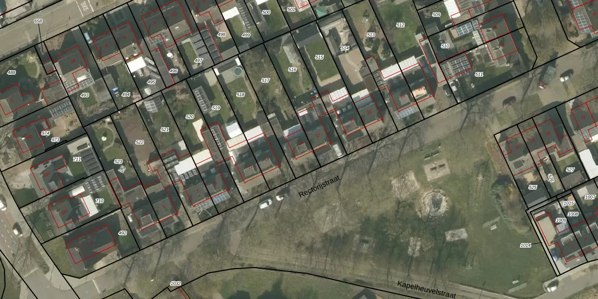 Het perceel waarop Rectorijstraat 15 staat heeft een oppervlakte van 435 m². Dit is een groot perceel. De perceeloppervlakte wordt geregistreerd door het Kadaster. Gedetailleerde informatie over de maten van dit perceel kunt u vinden in het rapport Kadastrale kaart met maatvoering van Rectorijstraat 15.