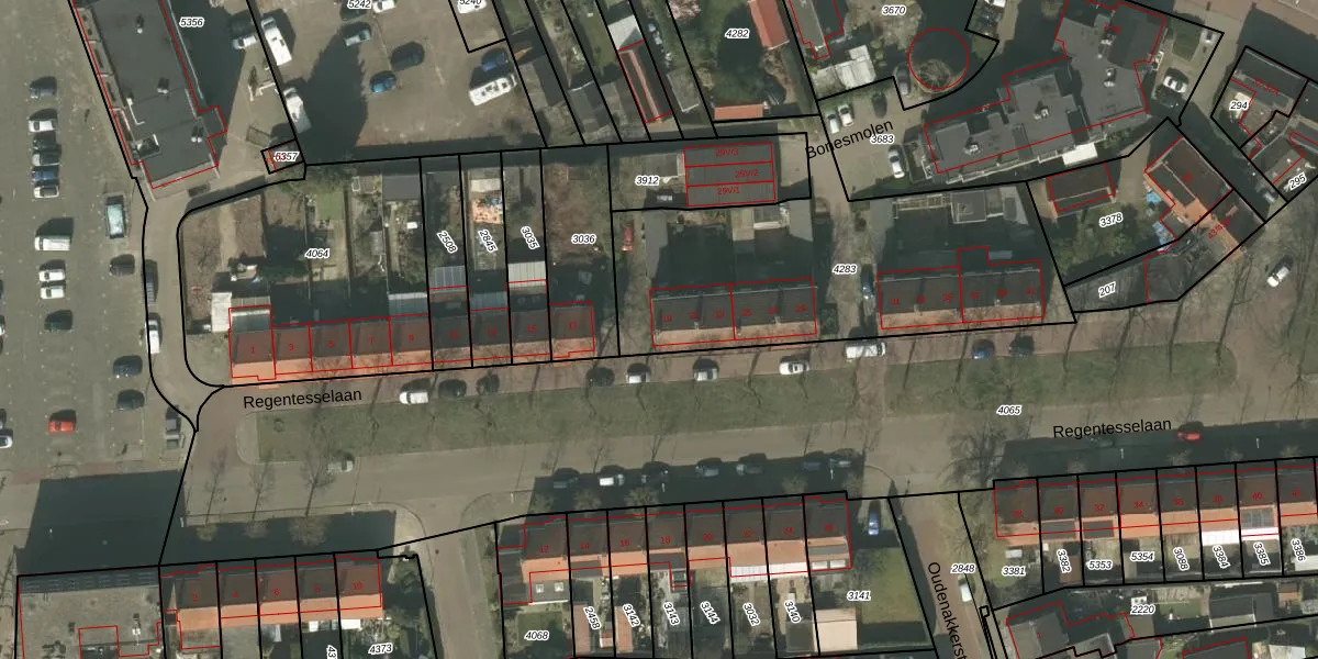 Het perceel waarop Regentesselaan 19 staat heeft een oppervlakte van 1532 m². Dit is een zeer groot perceel. De perceeloppervlakte wordt geregistreerd door het Kadaster. Gedetailleerde informatie over de maten van dit perceel kunt u vinden in het rapport Kadastrale kaart met maatvoering van Regentesselaan 19.
