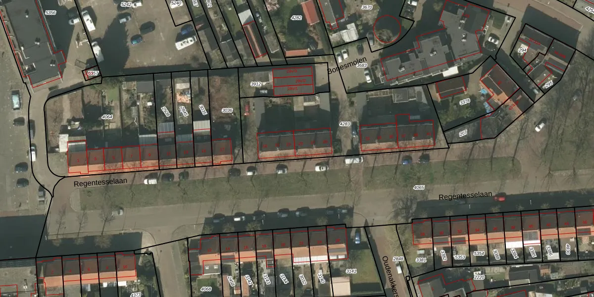 Het perceel waarop Regentesselaan 25 staat heeft een oppervlakte van 1532 m². Dit is een zeer groot perceel. De perceeloppervlakte wordt geregistreerd door het Kadaster. Gedetailleerde informatie over de maten van dit perceel kunt u vinden in het rapport Kadastrale kaart met maatvoering van Regentesselaan 25.