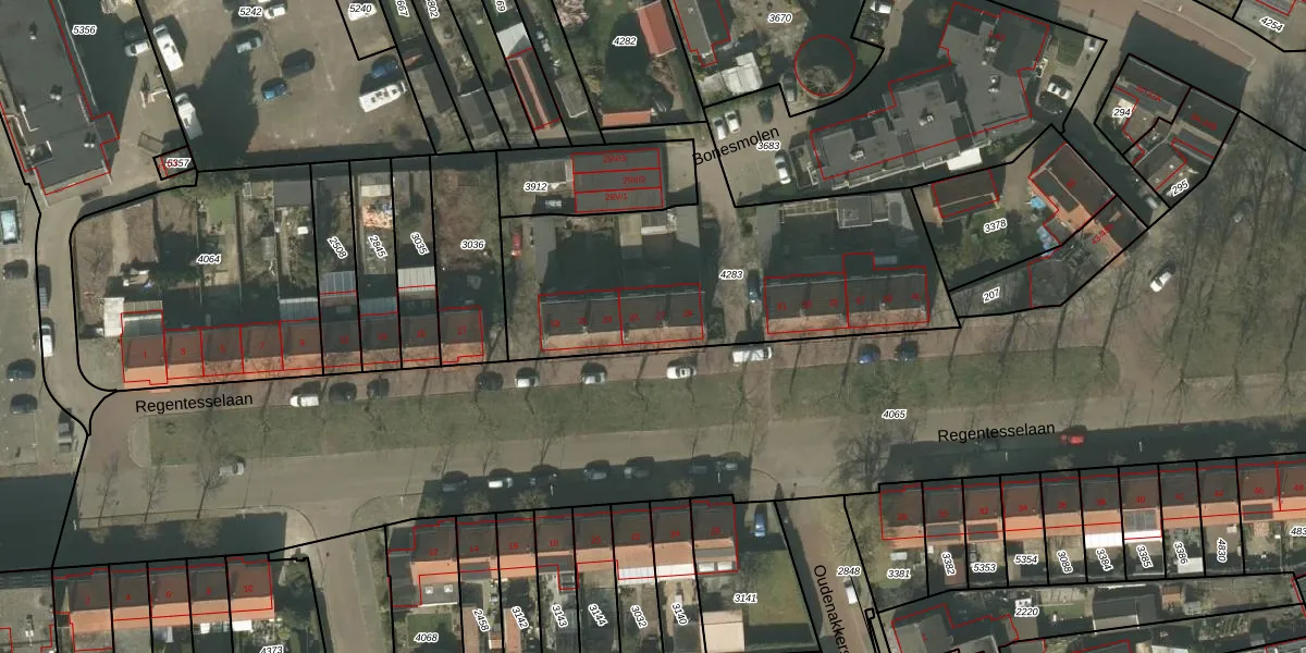 Het perceel waarop Regentesselaan 27 staat heeft een oppervlakte van 1532 m². Dit is een zeer groot perceel. De perceeloppervlakte wordt geregistreerd door het Kadaster. Gedetailleerde informatie over de maten van dit perceel kunt u vinden in het rapport Kadastrale kaart met maatvoering van Regentesselaan 27.