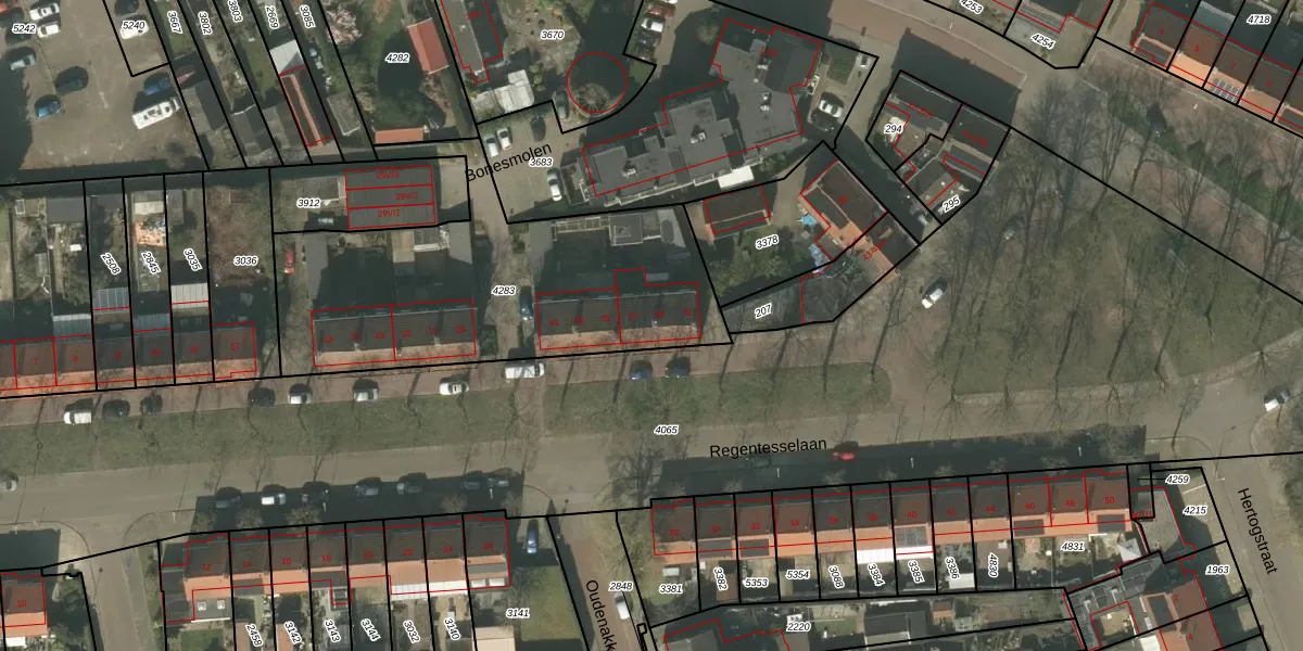 Het perceel waarop Regentesselaan 39 staat heeft een oppervlakte van 1532 m². Dit is een zeer groot perceel. De perceeloppervlakte wordt geregistreerd door het Kadaster. Gedetailleerde informatie over de maten van dit perceel kunt u vinden in het rapport Kadastrale kaart met maatvoering van Regentesselaan 39.