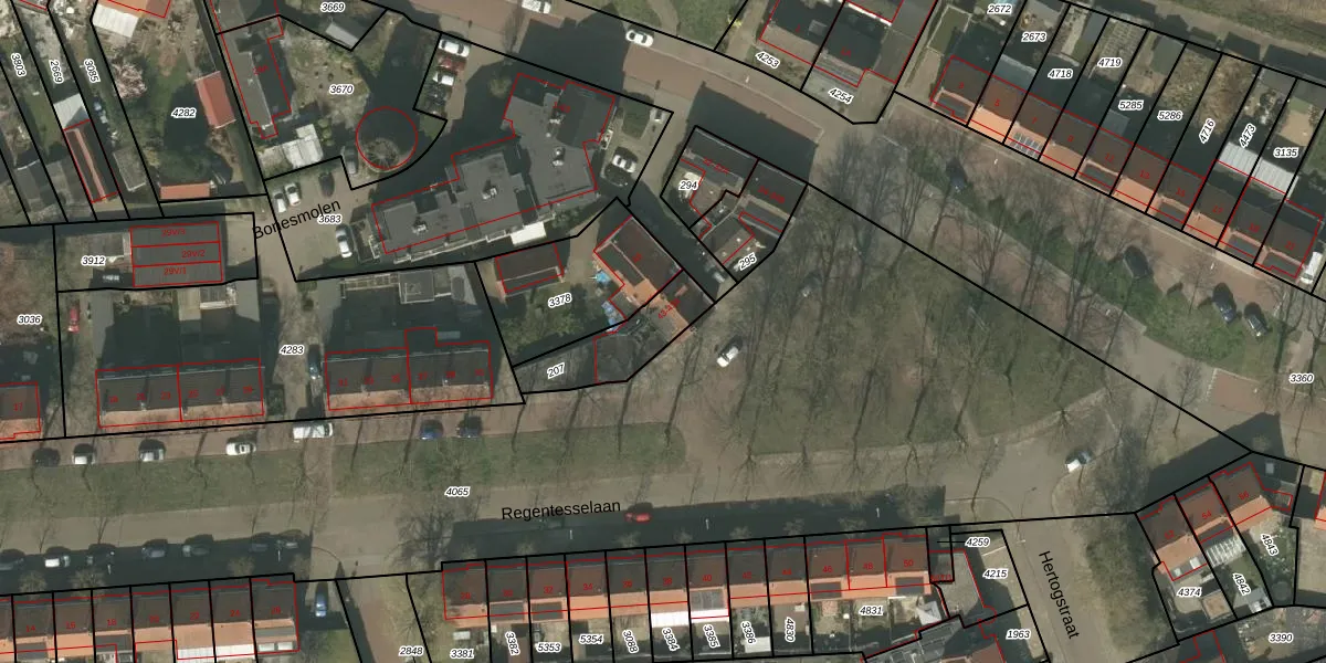 Regentesselaan 43 is gelegen op kadastraal perceel WEE01R207. Deze kadastrale aanduiding is uniek en wordt gebruikt door het Kadaster om eigendomsrechten en andere zakelijke rechten vast te leggen. Het perceel maakt onderdeel uit van de kadastrale gemeente Weert.