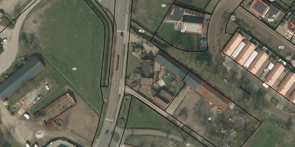 Het perceel waarop Rietstraat 2-G staat heeft een oppervlakte van 1380 m². Dit is een zeer groot perceel. De perceeloppervlakte wordt geregistreerd door het Kadaster. Gedetailleerde informatie over de maten van dit perceel kunt u vinden in het rapport Kadastrale kaart met maatvoering van Rietstraat 2-G.