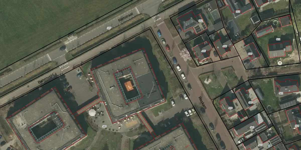 Het perceel waarop Rietstraat 2-B-01 staat heeft een oppervlakte van 1,3 ha. Dit is een zeer groot perceel. De perceeloppervlakte wordt geregistreerd door het Kadaster. Gedetailleerde informatie over de maten van dit perceel kunt u vinden in het rapport Kadastrale kaart met maatvoering van Rietstraat 2-B-01.