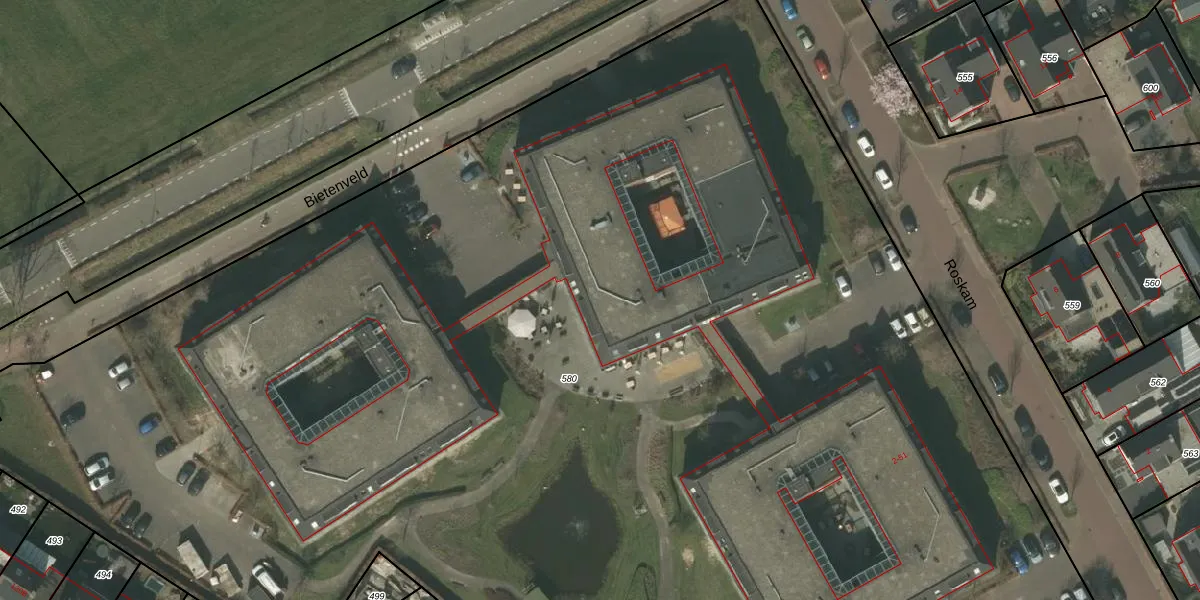 Het perceel waarop Rietstraat 2-B-13 staat heeft een oppervlakte van 1,3 ha. Dit is een zeer groot perceel. De perceeloppervlakte wordt geregistreerd door het Kadaster. Gedetailleerde informatie over de maten van dit perceel kunt u vinden in het rapport Kadastrale kaart met maatvoering van Rietstraat 2-B-13.