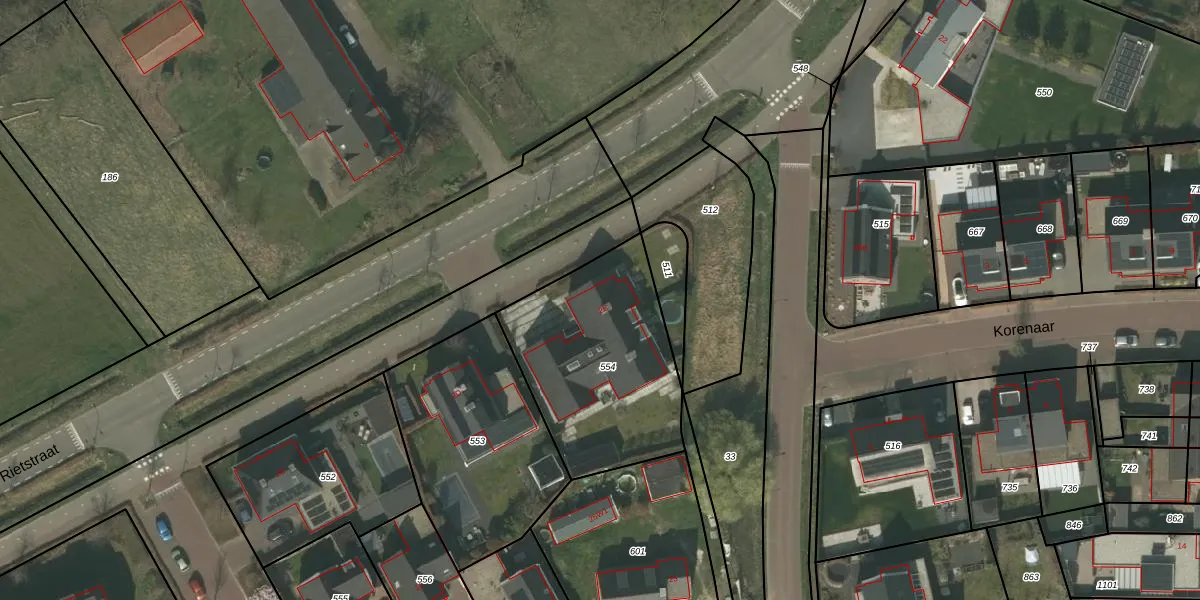 Het perceel waarop Rietstraat 2-E staat heeft een oppervlakte van 808 m². Dit is een groot perceel. De perceeloppervlakte wordt geregistreerd door het Kadaster. Gedetailleerde informatie over de maten van dit perceel kunt u vinden in het rapport Kadastrale kaart met maatvoering van Rietstraat 2-E.