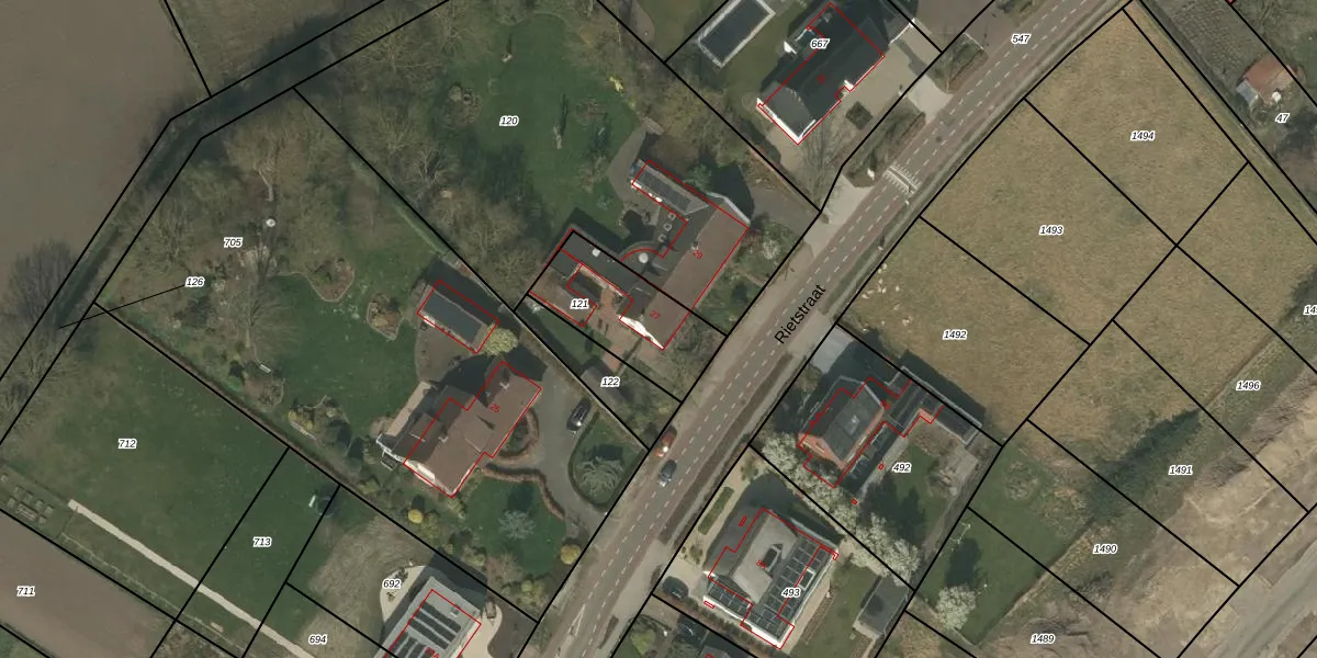 Het perceel waarop Rietstraat 27 staat heeft een oppervlakte van 345 m². Dit is een groot perceel. De perceeloppervlakte wordt geregistreerd door het Kadaster. Gedetailleerde informatie over de maten van dit perceel kunt u vinden in het rapport Kadastrale kaart met maatvoering van Rietstraat 27.