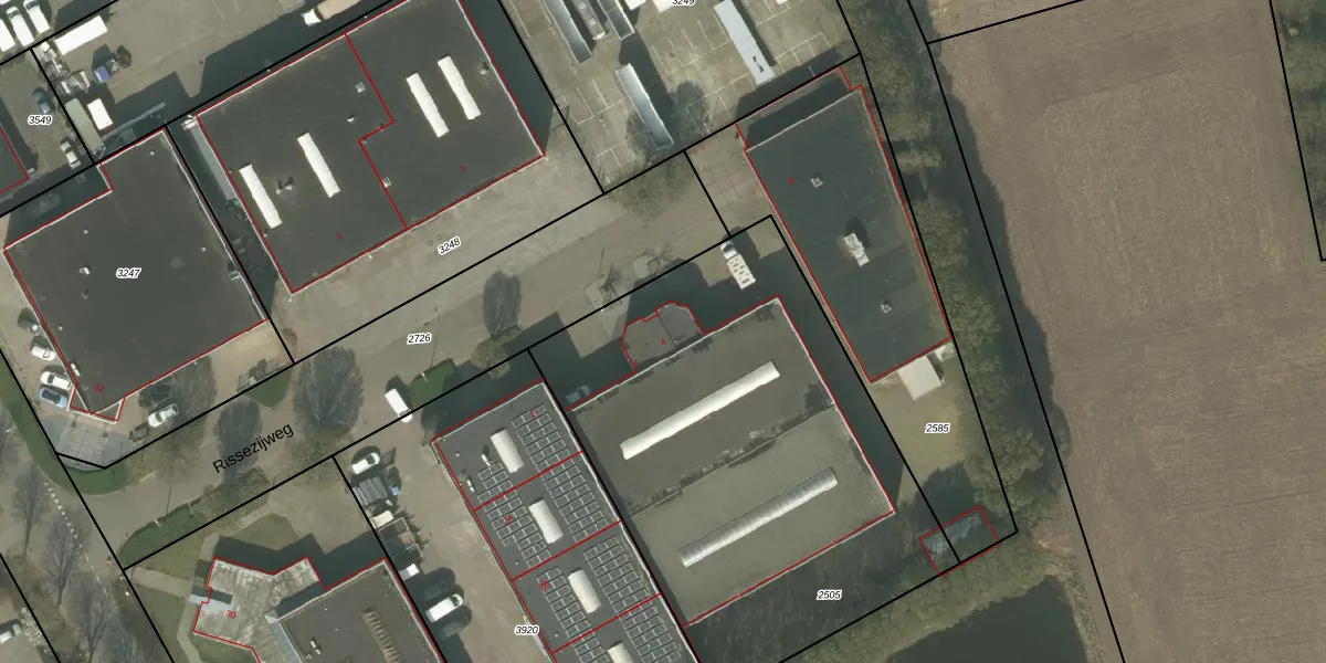 Het perceel waarop Rissezijweg 4 staat heeft een oppervlakte van 2490 m². Dit is een zeer groot perceel. De perceeloppervlakte wordt geregistreerd door het Kadaster. Gedetailleerde informatie over de maten van dit perceel kunt u vinden in het rapport Kadastrale kaart met maatvoering van Rissezijweg 4.