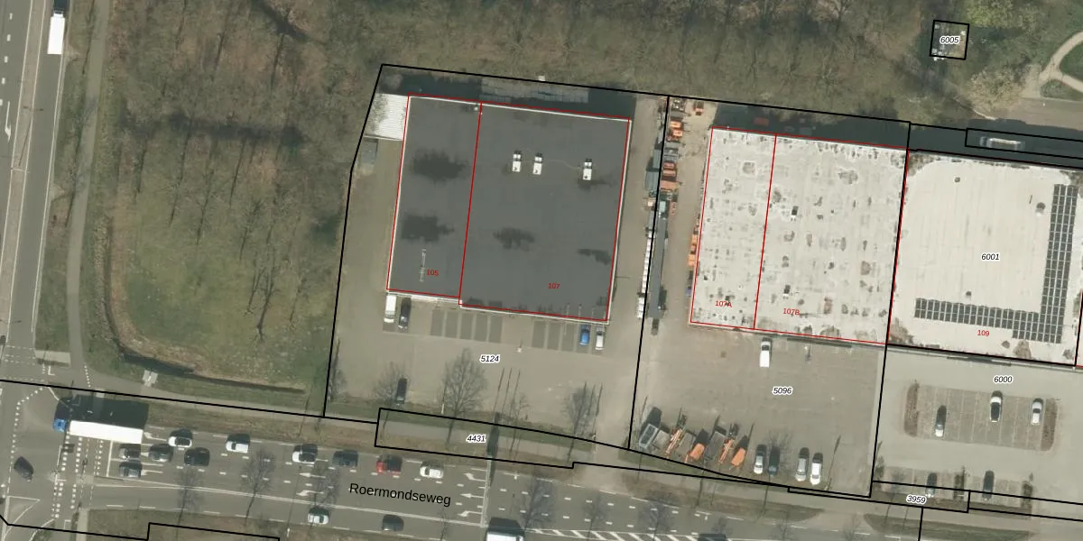 Roermondseweg 107 is gelegen op kadastraal perceel WEE01S5124. Deze kadastrale aanduiding is uniek en wordt gebruikt door het Kadaster om eigendomsrechten en andere zakelijke rechten vast te leggen. Het perceel maakt onderdeel uit van de kadastrale gemeente Weert.