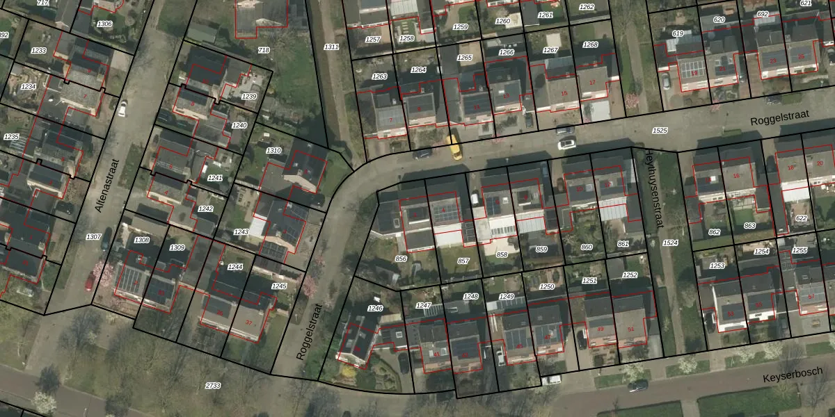 Het perceel waarop Roggelstraat 2 staat heeft een oppervlakte van 387 m². Dit is een groot perceel. De perceeloppervlakte wordt geregistreerd door het Kadaster. Gedetailleerde informatie over de maten van dit perceel kunt u vinden in het rapport Kadastrale kaart met maatvoering van Roggelstraat 2.