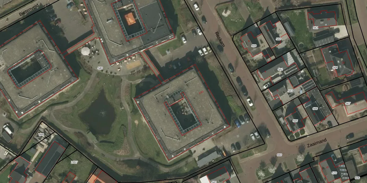 Het perceel waarop Roskam 13 staat heeft een oppervlakte van 1,3 ha. Dit is een zeer groot perceel. De perceeloppervlakte wordt geregistreerd door het Kadaster. Gedetailleerde informatie over de maten van dit perceel kunt u vinden in het rapport Kadastrale kaart met maatvoering van Roskam 13.