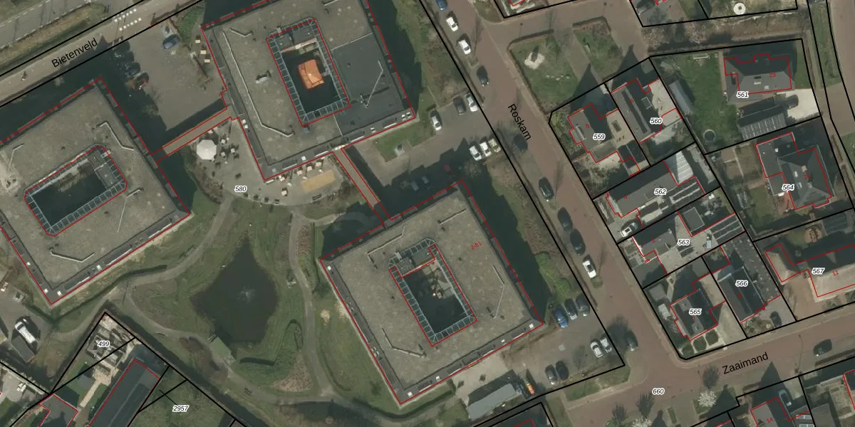 Het perceel waarop Roskam 17 staat heeft een oppervlakte van 1,3 ha. Dit is een zeer groot perceel. De perceeloppervlakte wordt geregistreerd door het Kadaster. Gedetailleerde informatie over de maten van dit perceel kunt u vinden in het rapport Kadastrale kaart met maatvoering van Roskam 17.
