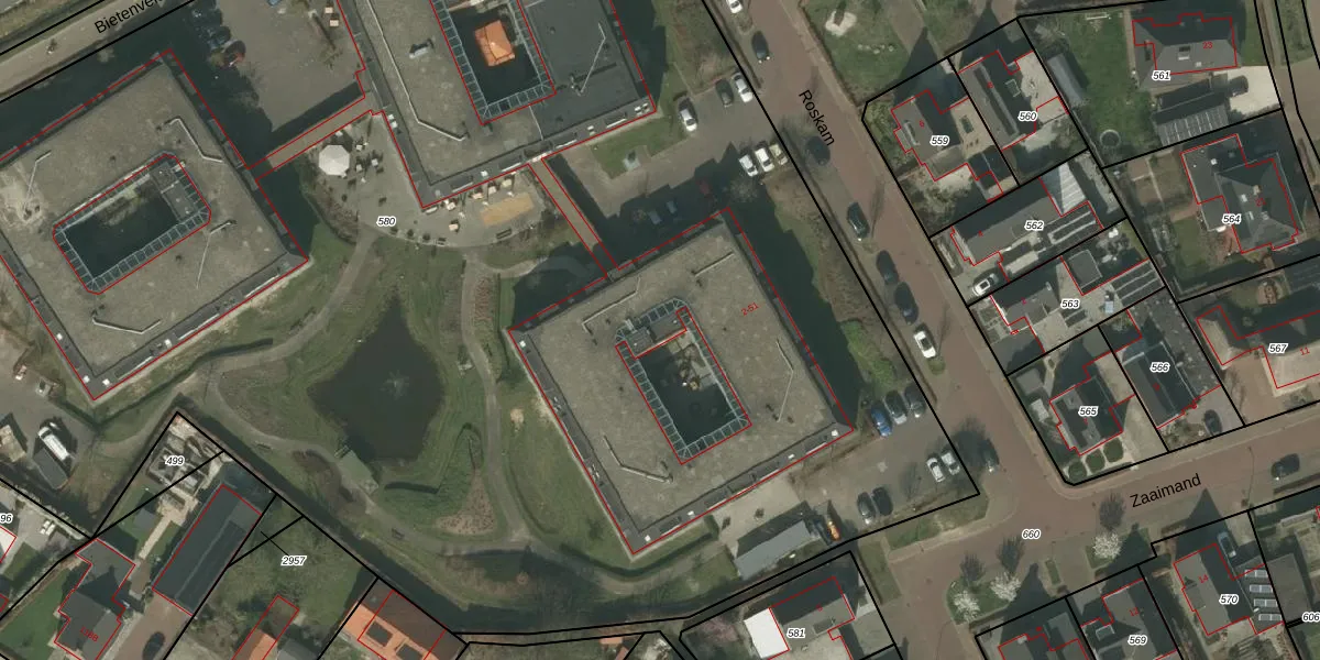 Het perceel waarop Roskam 19 staat heeft een oppervlakte van 1,3 ha. Dit is een zeer groot perceel. De perceeloppervlakte wordt geregistreerd door het Kadaster. Gedetailleerde informatie over de maten van dit perceel kunt u vinden in het rapport Kadastrale kaart met maatvoering van Roskam 19.