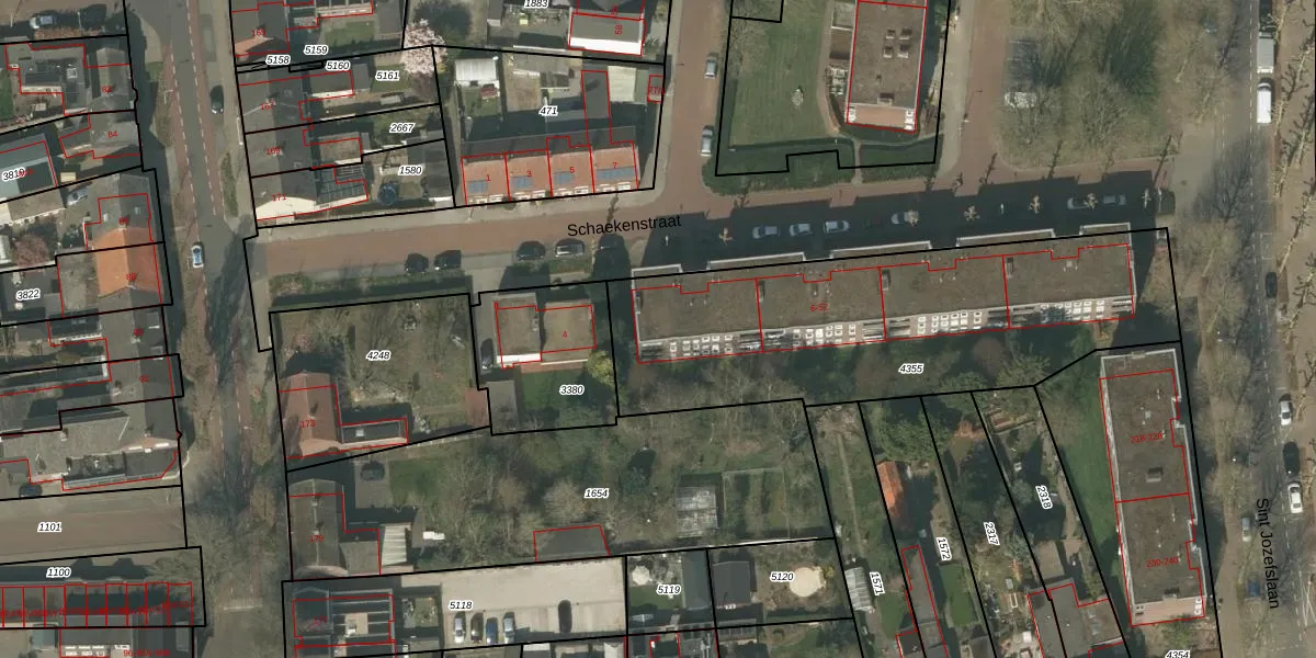 Het perceel waarop Schaekenstraat 10 staat heeft een oppervlakte van 1775 m². Dit is een zeer groot perceel. De perceeloppervlakte wordt geregistreerd door het Kadaster. Gedetailleerde informatie over de maten van dit perceel kunt u vinden in het rapport Kadastrale kaart met maatvoering van Schaekenstraat 10.
