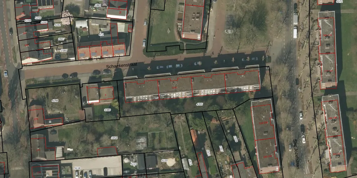 Het perceel waarop Schaekenstraat 24 staat heeft een oppervlakte van 1775 m². Dit is een zeer groot perceel. De perceeloppervlakte wordt geregistreerd door het Kadaster. Gedetailleerde informatie over de maten van dit perceel kunt u vinden in het rapport Kadastrale kaart met maatvoering van Schaekenstraat 24.