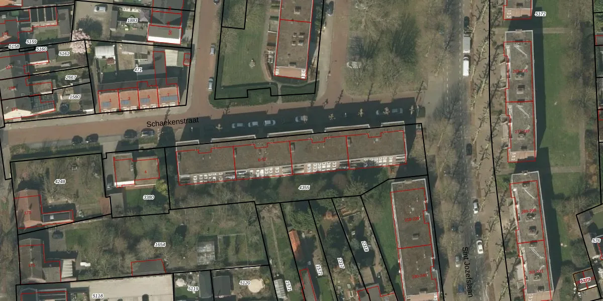 Het perceel waarop Schaekenstraat 30 staat heeft een oppervlakte van 1775 m². Dit is een zeer groot perceel. De perceeloppervlakte wordt geregistreerd door het Kadaster. Gedetailleerde informatie over de maten van dit perceel kunt u vinden in het rapport Kadastrale kaart met maatvoering van Schaekenstraat 30.