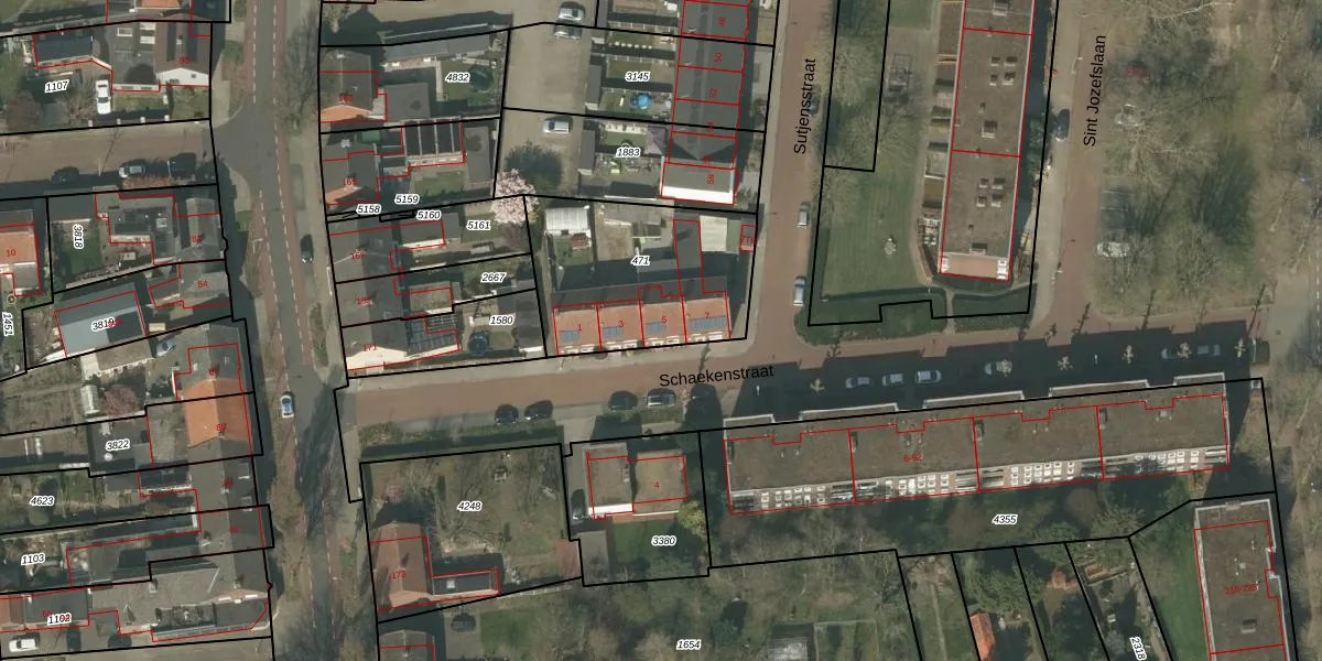 Het perceel waarop Schaekenstraat 5 staat heeft een oppervlakte van 710 m². Dit is een groot perceel. De perceeloppervlakte wordt geregistreerd door het Kadaster. Gedetailleerde informatie over de maten van dit perceel kunt u vinden in het rapport Kadastrale kaart met maatvoering van Schaekenstraat 5.