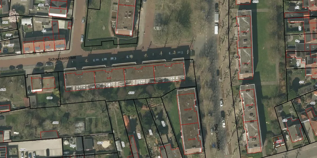 Het perceel waarop Schaekenstraat 50 staat heeft een oppervlakte van 1775 m². Dit is een zeer groot perceel. De perceeloppervlakte wordt geregistreerd door het Kadaster. Gedetailleerde informatie over de maten van dit perceel kunt u vinden in het rapport Kadastrale kaart met maatvoering van Schaekenstraat 50.