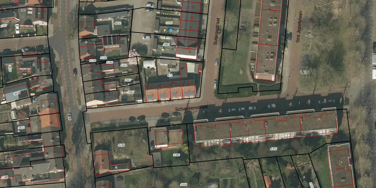 Het perceel waarop Schaekenstraat 7 staat heeft een oppervlakte van 710 m². Dit is een groot perceel. De perceeloppervlakte wordt geregistreerd door het Kadaster. Gedetailleerde informatie over de maten van dit perceel kunt u vinden in het rapport Kadastrale kaart met maatvoering van Schaekenstraat 7.