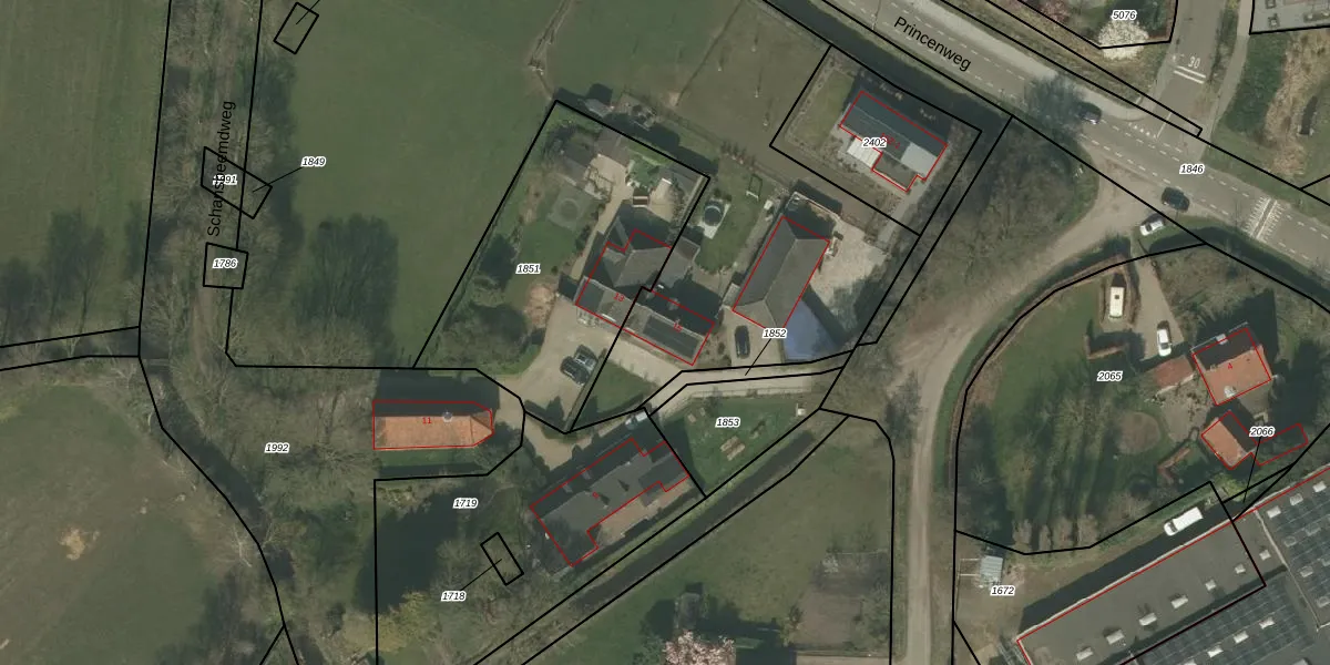 Het perceel waarop Schansbeemdweg 15 staat heeft een oppervlakte van 5701 m². Dit is een zeer groot perceel. De perceeloppervlakte wordt geregistreerd door het Kadaster. Gedetailleerde informatie over de maten van dit perceel kunt u vinden in het rapport Kadastrale kaart met maatvoering van Schansbeemdweg 15.