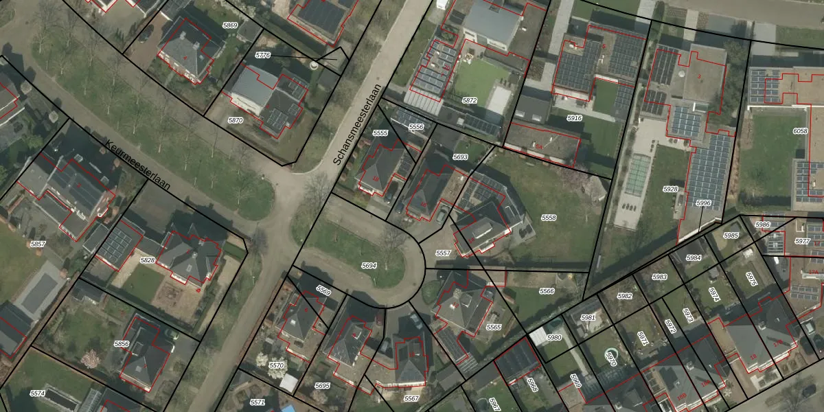 Het perceel waarop Schansmeesterlaan 16 staat heeft een oppervlakte van 363 m². Dit is een groot perceel. De perceeloppervlakte wordt geregistreerd door het Kadaster. Gedetailleerde informatie over de maten van dit perceel kunt u vinden in het rapport Kadastrale kaart met maatvoering van Schansmeesterlaan 16.