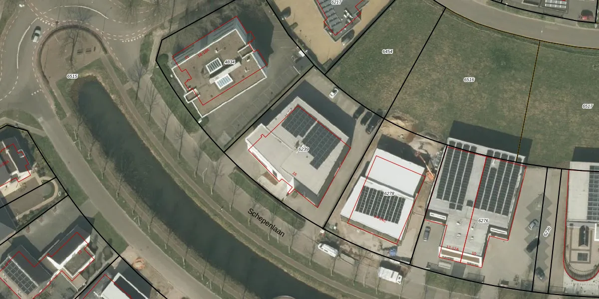 Het perceel waarop Schepenlaan 16-A staat heeft een oppervlakte van 1505 m². Dit is een zeer groot perceel. De perceeloppervlakte wordt geregistreerd door het Kadaster. Gedetailleerde informatie over de maten van dit perceel kunt u vinden in het rapport Kadastrale kaart met maatvoering van Schepenlaan 16-A.