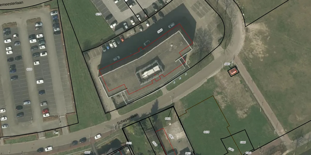 Het perceel waarop Schepenlaan 6 staat heeft een oppervlakte van 3774 m². Dit is een zeer groot perceel. De perceeloppervlakte wordt geregistreerd door het Kadaster. Gedetailleerde informatie over de maten van dit perceel kunt u vinden in het rapport Kadastrale kaart met maatvoering van Schepenlaan 6.