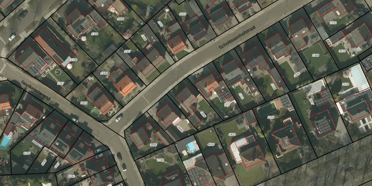 Het perceel waarop Scholtissenhofstraat 21 staat heeft een oppervlakte van 410 m². Dit is een groot perceel. De perceeloppervlakte wordt geregistreerd door het Kadaster. Gedetailleerde informatie over de maten van dit perceel kunt u vinden in het rapport Kadastrale kaart met maatvoering van Scholtissenhofstraat 21.