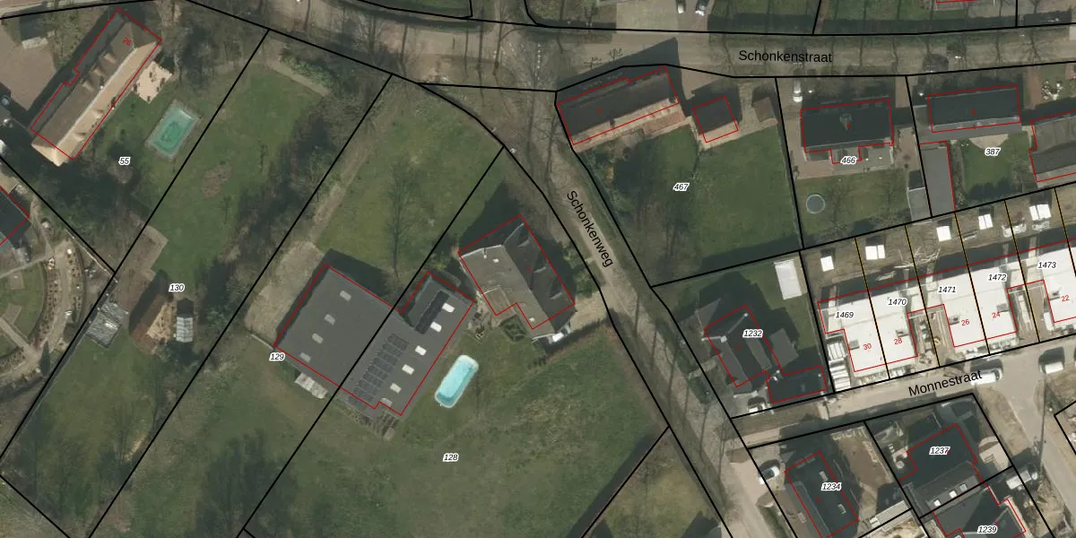 Schonkenweg 2 is gelegen op kadastraal perceel WEE01W128. Deze kadastrale aanduiding is uniek en wordt gebruikt door het Kadaster om eigendomsrechten en andere zakelijke rechten vast te leggen. Het perceel maakt onderdeel uit van de kadastrale gemeente Weert.