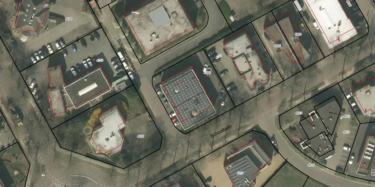 Schoutlaan 14 is gelegen op kadastraal perceel WEE01N5356. Deze kadastrale aanduiding is uniek en wordt gebruikt door het Kadaster om eigendomsrechten en andere zakelijke rechten vast te leggen. Het perceel maakt onderdeel uit van de kadastrale gemeente Weert.