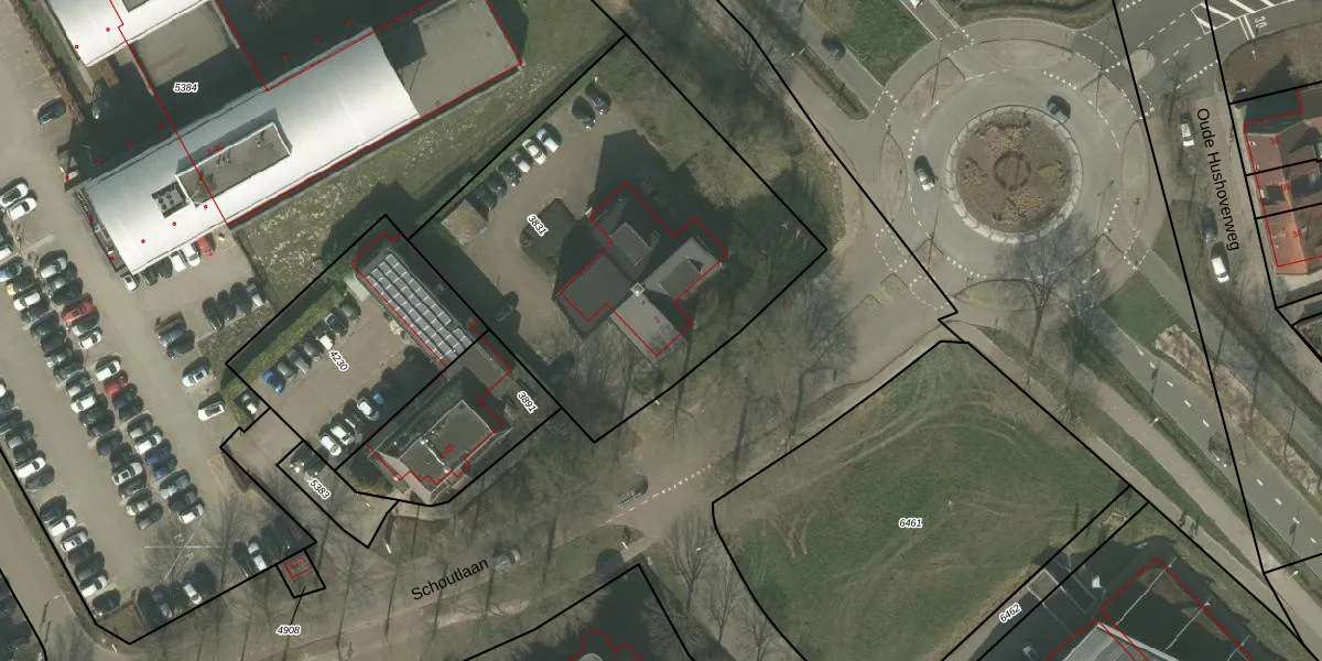 Het perceel waarop Schoutlaan 2 staat heeft een oppervlakte van 2005 m². Dit is een zeer groot perceel. De perceeloppervlakte wordt geregistreerd door het Kadaster. Gedetailleerde informatie over de maten van dit perceel kunt u vinden in het rapport Kadastrale kaart met maatvoering van Schoutlaan 2.