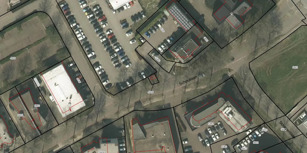 Schoutlaan 6-T-1 is gelegen op kadastraal perceel WEE01N4908. Deze kadastrale aanduiding is uniek en wordt gebruikt door het Kadaster om eigendomsrechten en andere zakelijke rechten vast te leggen. Het perceel maakt onderdeel uit van de kadastrale gemeente Weert.