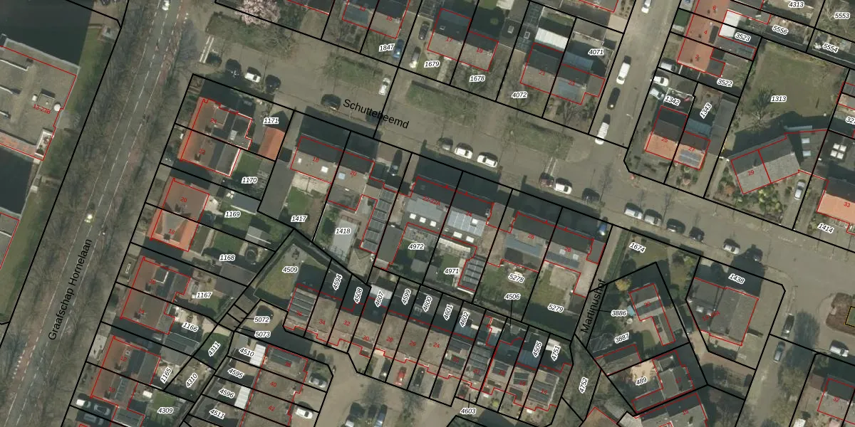 Het perceel waarop Schuttebeemd 22-A staat heeft een oppervlakte van 355 m². Dit is een groot perceel. De perceeloppervlakte wordt geregistreerd door het Kadaster. Gedetailleerde informatie over de maten van dit perceel kunt u vinden in het rapport Kadastrale kaart met maatvoering van Schuttebeemd 22-A.