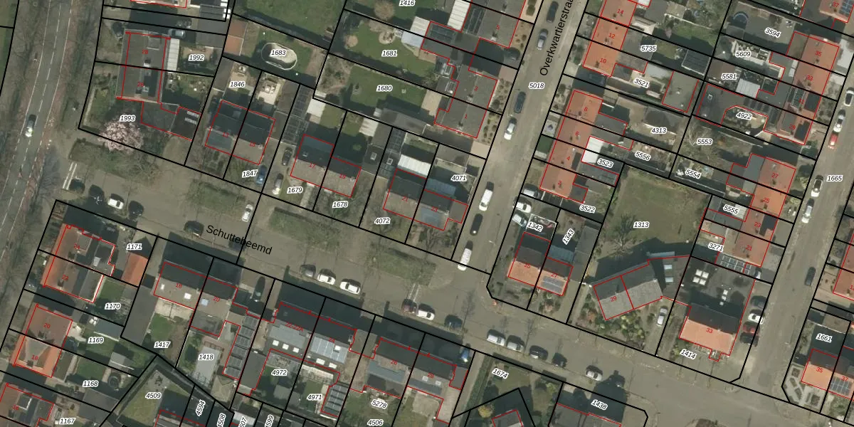 Gebruik de zoekbalk of klik op een perceel voor informatie over de adressen binnen dit perceel.