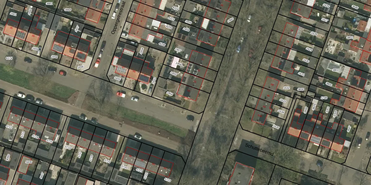 Het perceel waarop Schuttebeemd 53 staat heeft een oppervlakte van 354 m². Dit is een groot perceel. De perceeloppervlakte wordt geregistreerd door het Kadaster. Gedetailleerde informatie over de maten van dit perceel kunt u vinden in het rapport Kadastrale kaart met maatvoering van Schuttebeemd 53.