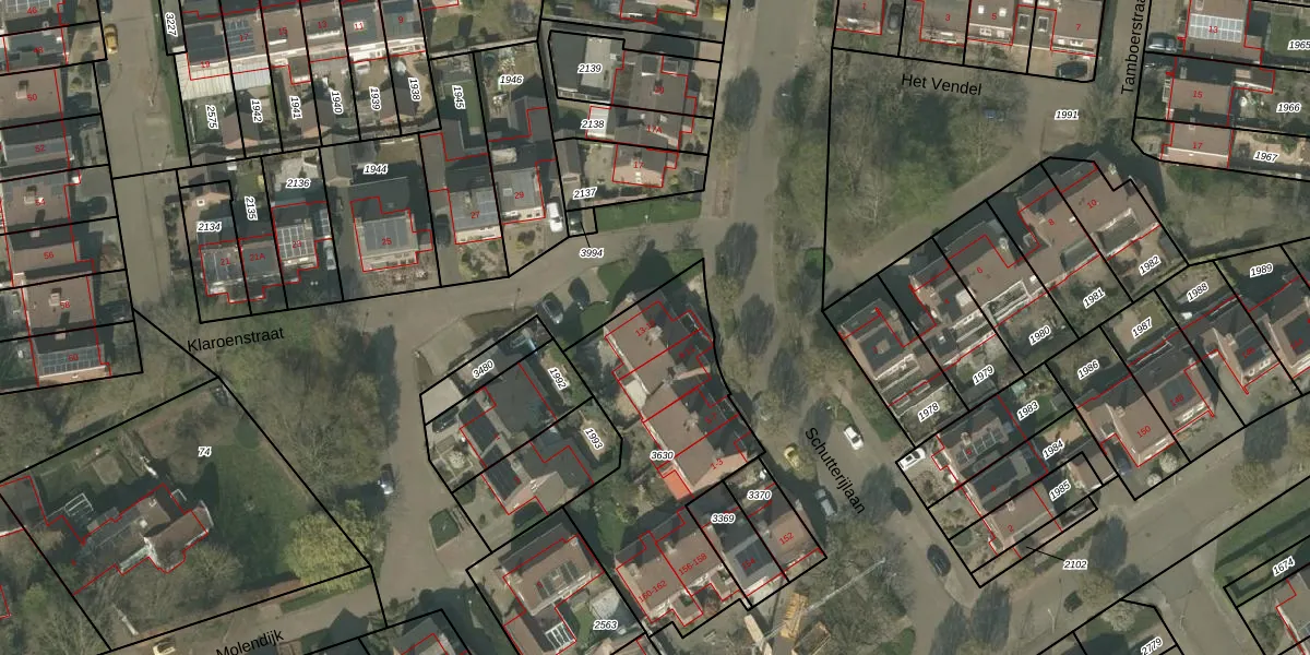 Het perceel waarop Schutterijlaan 13 staat heeft een oppervlakte van 976 m². Dit is een groot perceel. De perceeloppervlakte wordt geregistreerd door het Kadaster. Gedetailleerde informatie over de maten van dit perceel kunt u vinden in het rapport Kadastrale kaart met maatvoering van Schutterijlaan 13.
